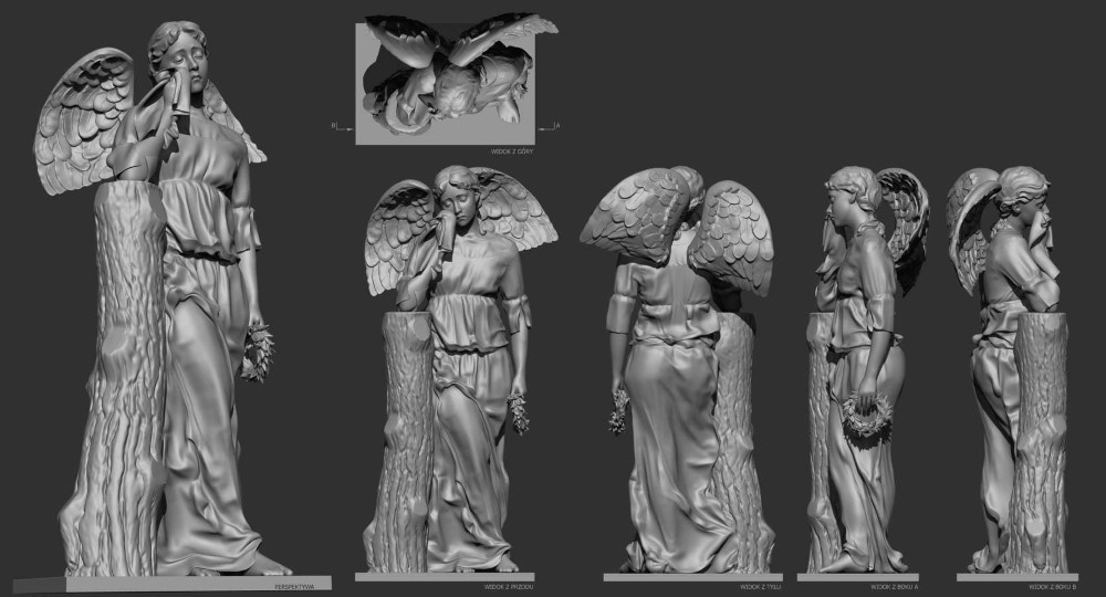 ● Wykonanie modelu 3D Płaczącego Anioła (na podstawie zdjęcia z 1943 roku) i wydruk 3D figury, która została umieszczona na odnowionym nagrobku Księży Słomińskich na cmentarzu w Knyszynie.